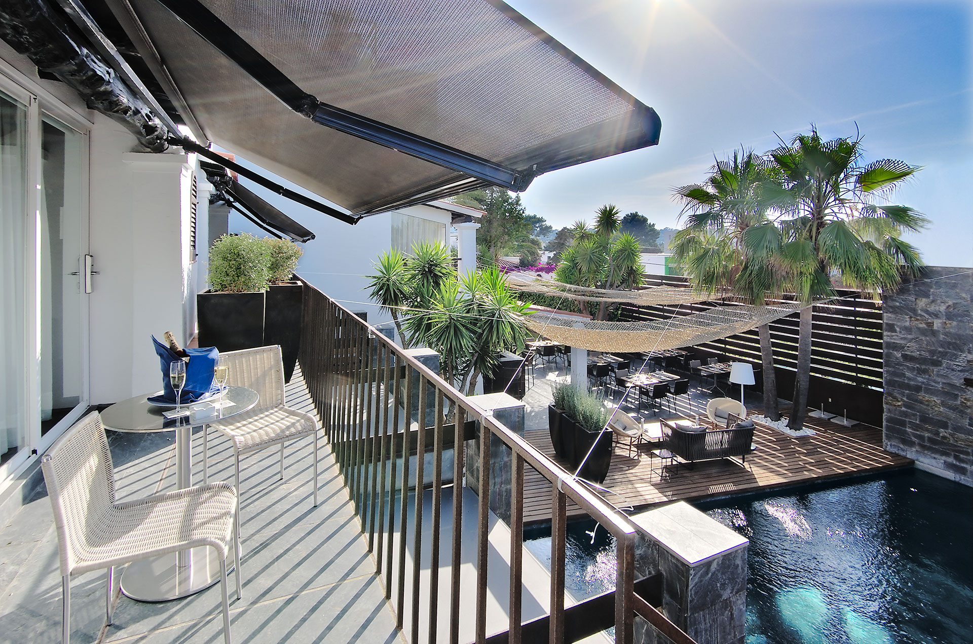 Habitaciones de gran amplitud con salón, amplios ventanales con vistas a la piscina, con cuidados elementos de interiorismo, bañera de diseño y ducha independiente. Un espacio de 45m2 con la máxima comodidad y confort que harán de su estancia una experiencia inolvidable.