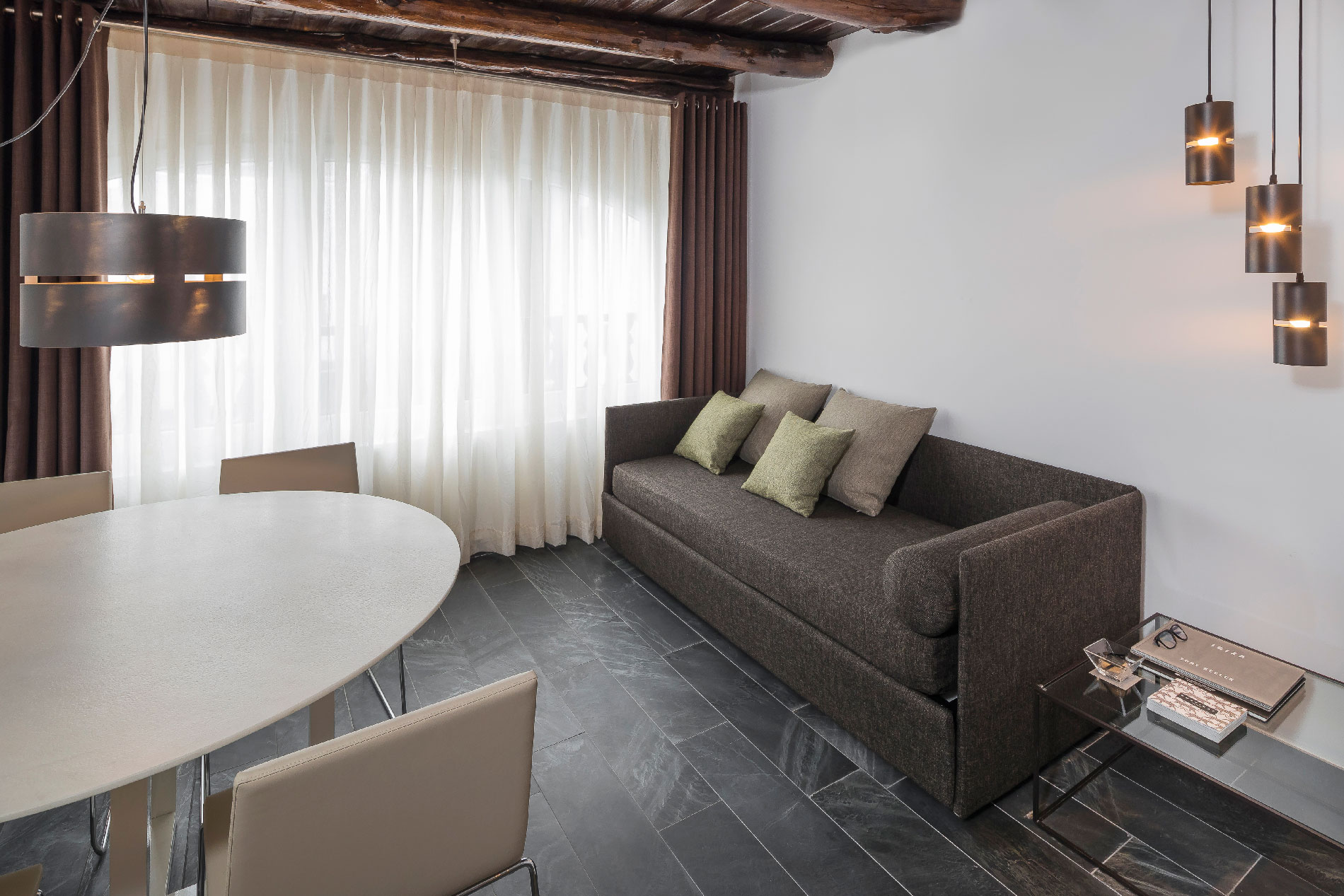 Diseño, cultura, arquitectura y comodidad le fascinarán en doble espacio de 75m2 dividido en una habitación principal con salón, bañera hidromasaje, televisor de 40”, y terraza donde poder desayunar, descansar y percibir la individualidad de esta luminosa suite con grandes ventanales que ofrecen inmejorables vistas del jardín y un salón-comedor convertible para su familia en dormitorio con vestidor y baño independiente para una mayor comodidad y el máximo disfrute del espacio.